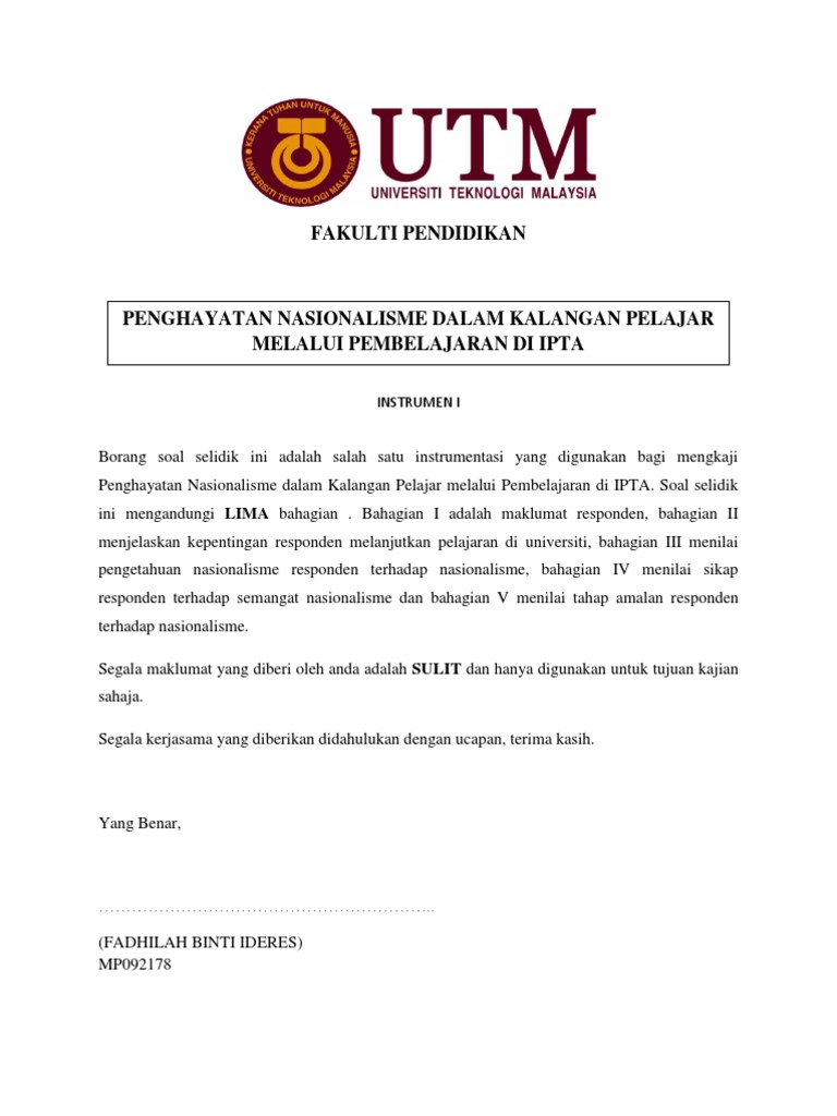 Instrumen Kajian Soal Selidik / Menurut mohd majid konting (1990), instrumen soal selidik dianggap sesuai dalam bidang pendidikan bagi tujuan.. Kajian mengenai isu pencemaran udara di bandaraya kuala lumpur bahagian a: Sebaliknya, soal selidik adalah instrumen yang digunakan dalam memperoleh data. Beberapa instrumen kajian seperti soalan soalan serta borang soal selidik bagi mendapatkan data dan maklumat daripada responden. Borang kebiasaannya sebelum pembangunan soal selidik dijalankan, proses penting yang harus dilakukan oleh penyelidik tentulah dengan membuat sorotan. Soal selidik membantu mengumpulkan maklumat tentang pengetahuan, sikap, pendapat, tingkah laku, fakta, dan maklumat lain.