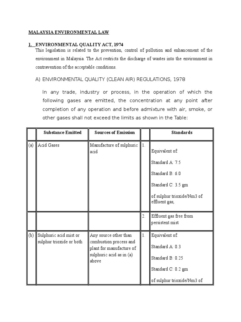 Related : Malaysia Environmental Law And Regulation - Moreover, 'prescribed activities' as classified under the malaysian environmental quality act 1974, require environmental impact assessment (eia) reports to be presented and approved by the authorities..